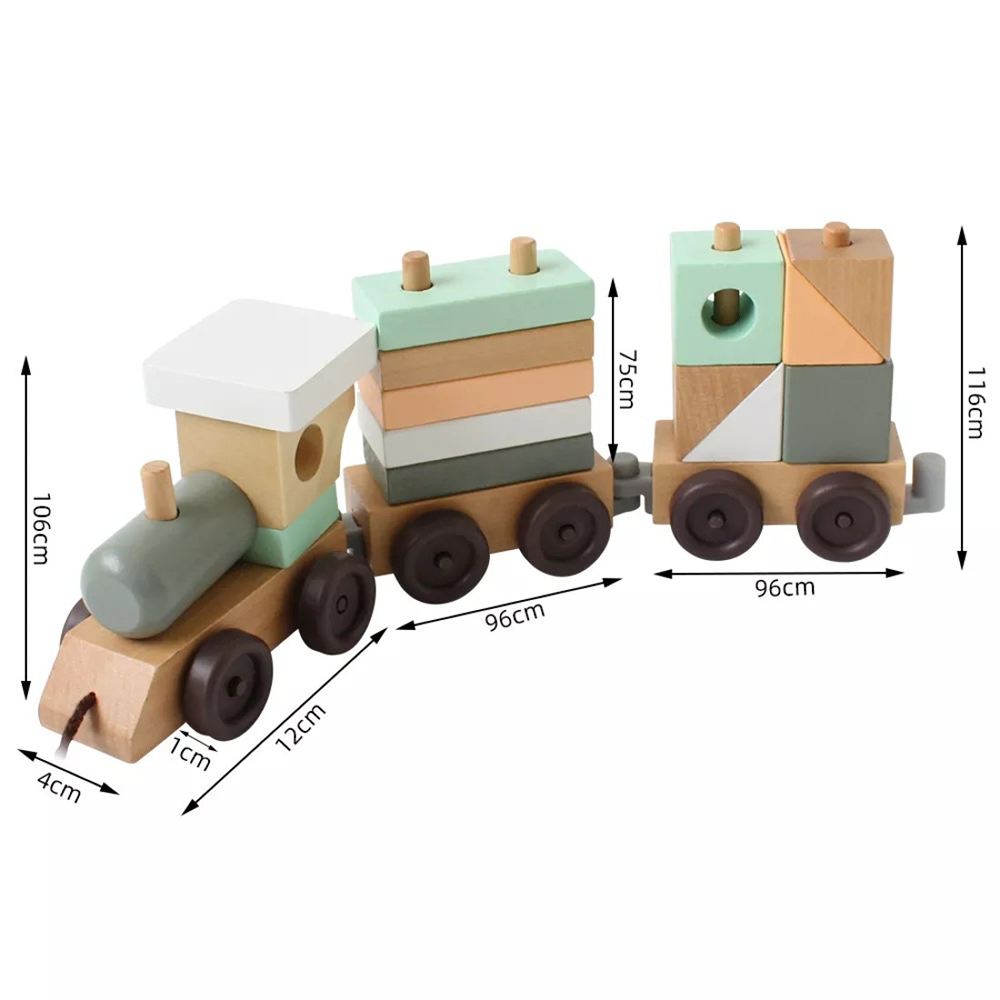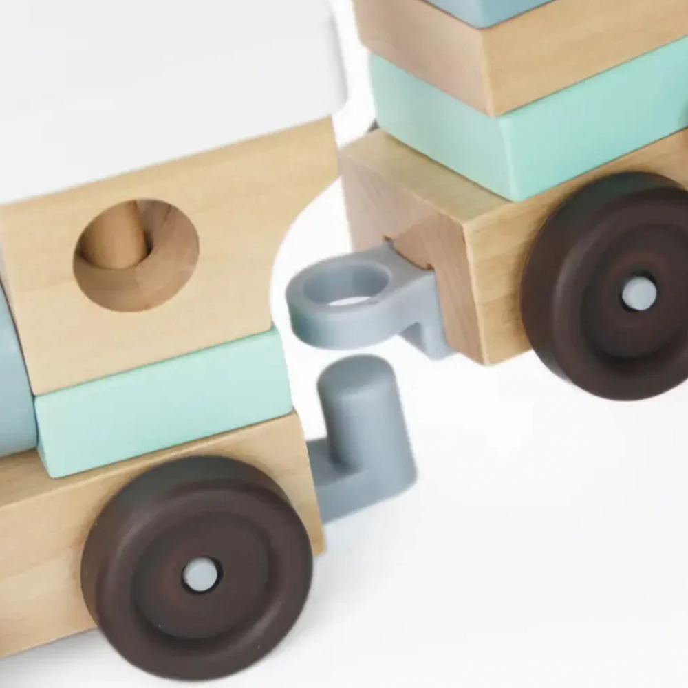 A beautifully made, 100% natural wood block train — hand-polished and coated with child-safe water-based paint. Durable, eco-friendly, and designed for little hands to stack, build and roll.